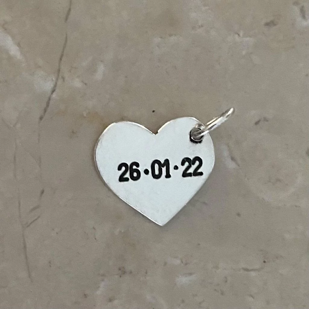 dije grabado, dije artesanal de plata925, incluye la cantidad de grabados que se ven en foto. La demora de las piezas es de 3 a 7 dias habiles. En notas se aclara, letra, nombres o iniciales a grabar.